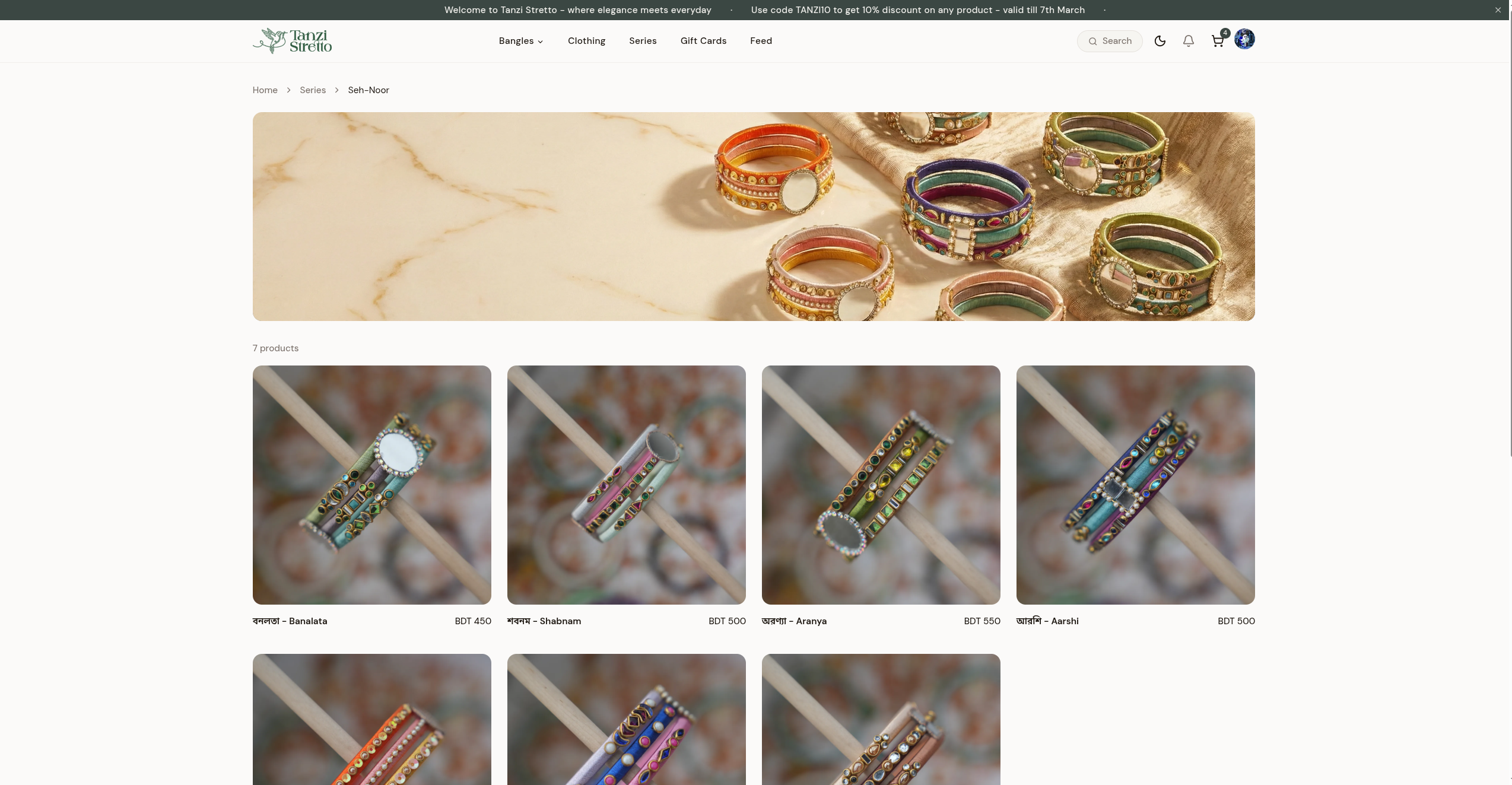 Tanzi Stretto is one of Bangladesh's leading brands in the handcrafted bangles and jewelry industry. The business specializes in premium cotton, silk, and fabric bangles, all handmade with care. Alongside bangles, the store also offers dresses, bags, rings, and other accessories.